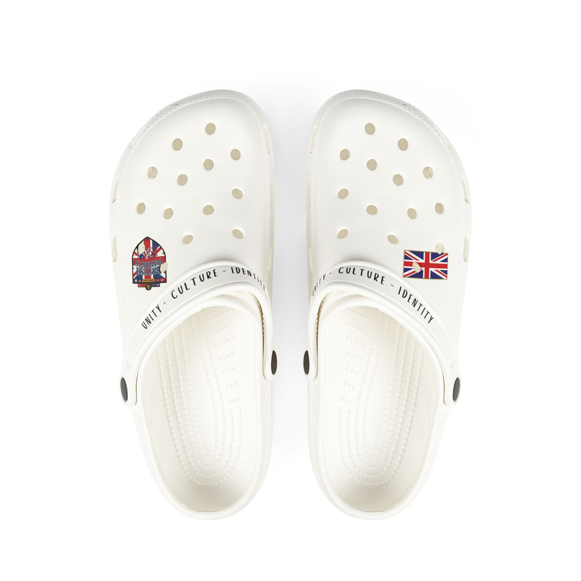 White EVA Foam Clogs with Union Jack Charm